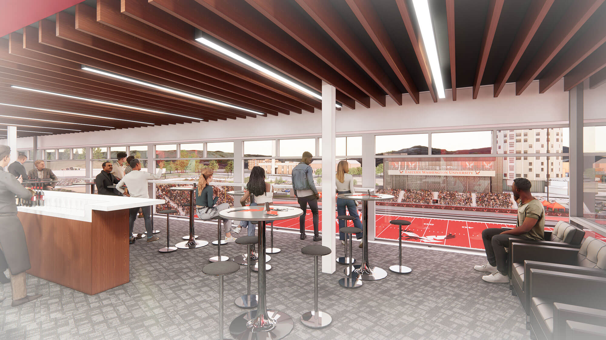 Eastern worked with ALSC Architects of Spokane, which has a proven record of successful projects around the region–including athletic facilities at Whitworth University, Gonzaga University and Washington State University. ALSC has also completed athletic facility master planning and concept work on the EWU campus over the past 20 years. The renderings are conceptual at this point, and may change as we move into additional design and planning phases.