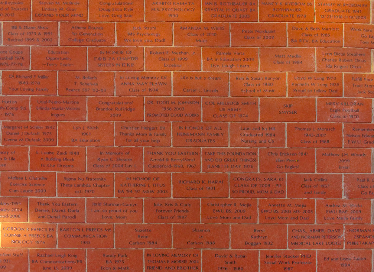 Each 4″ x 8″ brick is displayed with your name and message, such as class year, degree or collegiate organization.