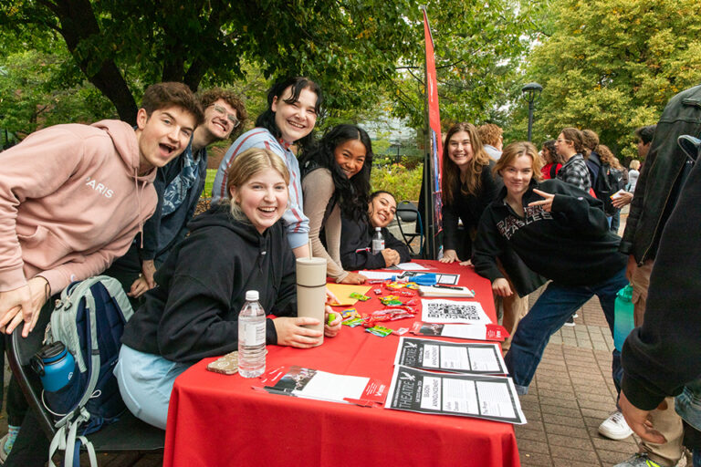 Every autumn at EWU, a host of on- and off-campus groups gather together for Neighborfest, a joyful rite of information sharing that kicks off the new academic year. The 2025 festival, held under crystalline blue skies at the Arevalo Mall, was one of the biggest ever, with close to 150 groups participating. Among them was EWU’s Theatre Department, pictured here, which maintained perhaps the most consistently boisterous of all the event’s tables.