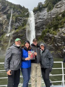 During a three-week-long trip to New Zealand and Australia, Dwayne Deckard and Danice Deckard ’84, along with Matt Portch and Linda Portch ’80 (pictured from left) took in the spectacular scenery at Milford Sound, a UNESCO World Heritage site on New Zealand’s South Island.