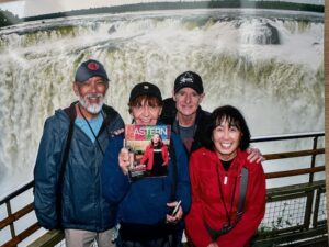 Dave Heyamoto, Jerrie Little Heyamoto ’88, Janice Hijiya Price ’70 and Jim Price (pictured from left) recently trekked to the Argentinian rainforest to experience Iguazu Falls, the world’s largest waterfall system. “The falls were at low flow if you can believe it,” Dave Heyamoto says.