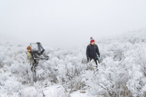 On a bitterly cold morning in December, EWU research scientist Charlotte Milling and her team of Eastern student researchers are slowly pushing through a semi-enclosed portion of this endangered landscape, carefully bushwhacking through chest-high stands of sage, each gnarled plant painted white with frost. Some carry metal framed gentle-trapping gear. Others wield ungainly, soft-mesh-netted PVC contraptions. The goal is to round up pygmy rabbits for their semi-annual checkup and blood draw. The rabbits, understandably, are eager to avoid this.