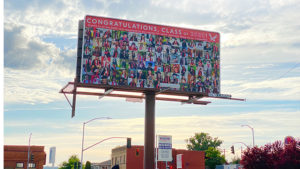 Eastern graduates look down from a billboard at the corner of N. Monroe St. and Boone Ave. in downtown Spokane. EWU reserved the billboard — pre-pandemic — to congratulate graduates and their families as they left the commencement ceremony planned for Spokane Veterans Memorial Arena. When graduation went online, the university moved to replace its…