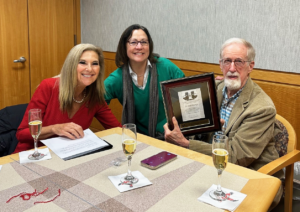 Bill Youngs is pictured receiving a plaque presented by President Shari McMahan and Kaarin Appel, senior director of philanthropy.