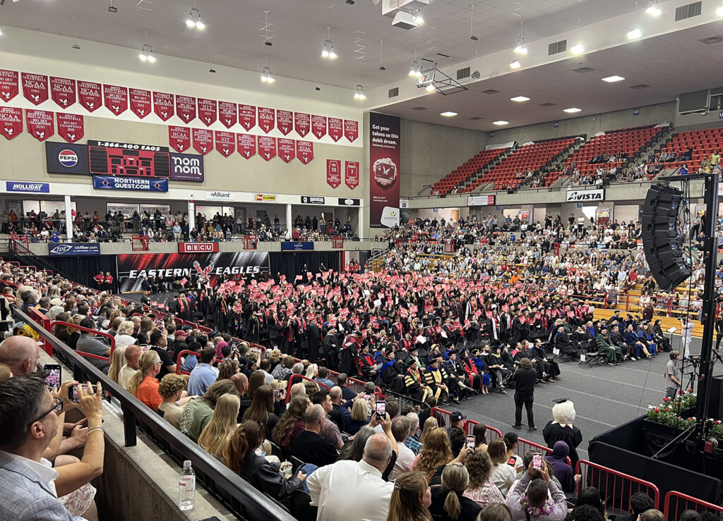 June weather proved too unpredictable — and at times too uncomfortable — for an outdoor ceremony, prompting the transition to the larger indoor venue in Spokane. Last year’s June commencement was held at The Podium while the nearby arena underwent renovations.
