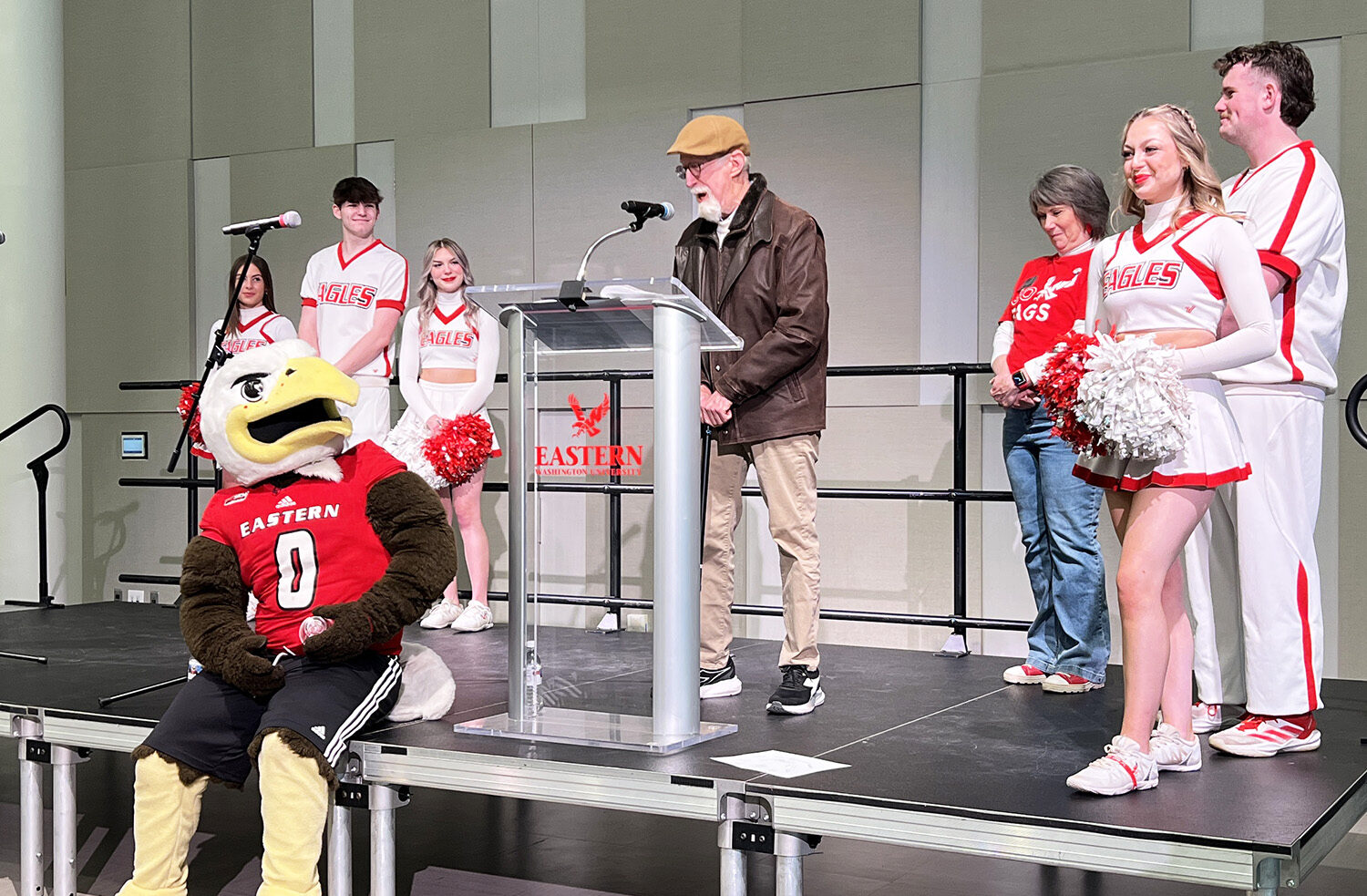 The celebration continued on April 3, Giving Joy Day, with an event at the PUB with more cupcakes, additional Swoop antics, announcements of key gifts and remarks of appreciation from President Shari McMahan. Two additional events wrapped up the day, an EWU Music concert that featured the EWU Orchestra playing with the Spokane Symphony, and an Alumni Association event with the Spokane Zephyr FC at the One Spokane Stadium. (Check out photos of the two-day celebration below.)