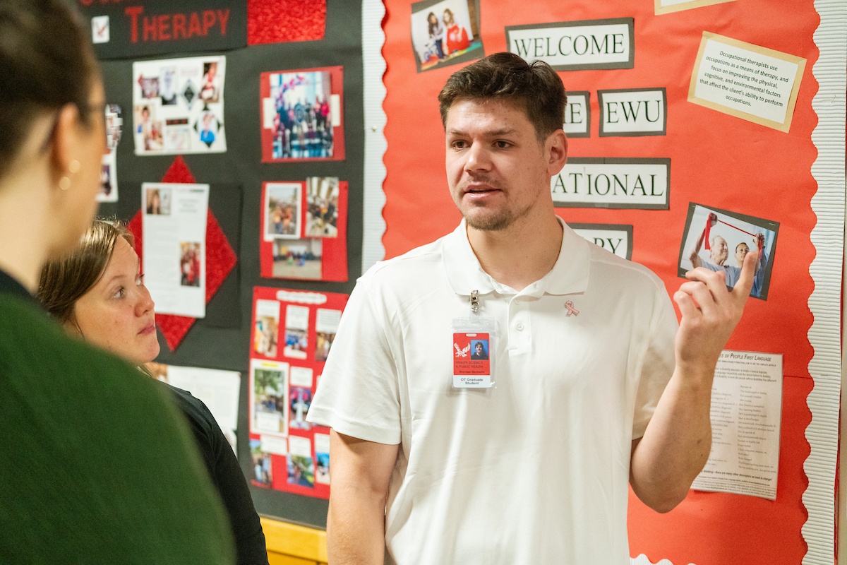 Bill Youngs, EWU’s longest-serving faculty member and philanthropist, found out firsthand what a difference he makes recently when he visited with first-year occupational therapy (OT) graduate students presenting their research.
