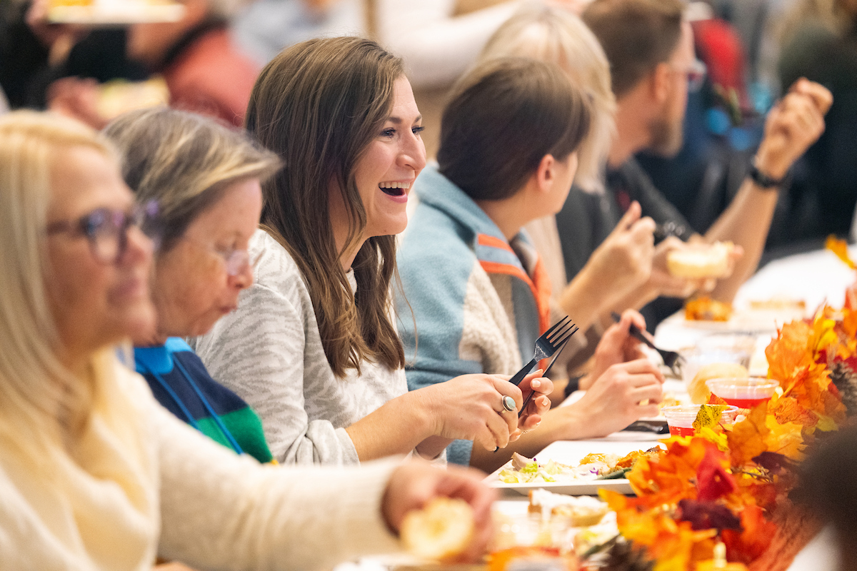 More than 400 faculty and staff members gathered for the Nov. 20 event, held at the PUB’s Nysether Community Room. While sitting at festively decorated tables, each attendee connected with peers while enjoying a delicious Thanksgiving-style meal.